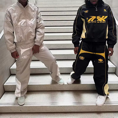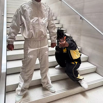 Özel Logo Hafif Nylon Spor Giysi windbreaker zip-up ceket ve baggie spor pantolon düşük MOQ ve OEM / ODM desteği